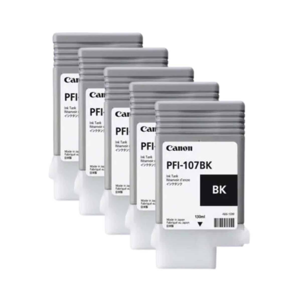 Cartucho de tinta Canon PFI 107 na cor Black. Tinta pigmentada com 130ml de volume em tinta.