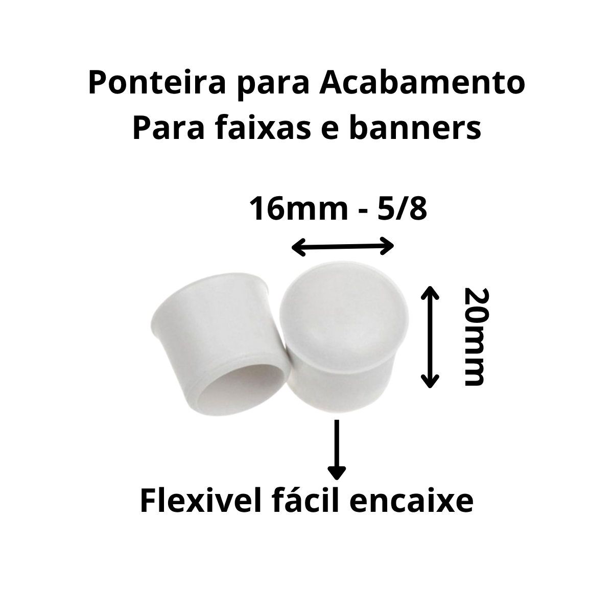 Ponteira branca 16mm 5/8 é o acessório perfeito para acabamento de banners e faixas. Fabricada em plástico ABS de alta qualidade, essa ponteira proporciona uma fixação firme e duradoura. É fácil de instalar, dispensando o uso de ferramentas e tornando o processo de montagem de banners e faixas mais ágil e eficiente.